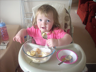 DD loved helping with all the stirring and mashing up the bananas. Not sure there is as much banana as there should be in the final cakes, some of it mysteriously disappeared during baking.I have a suspect but I can't prove it as she is getting more and more sneaky every day lol.